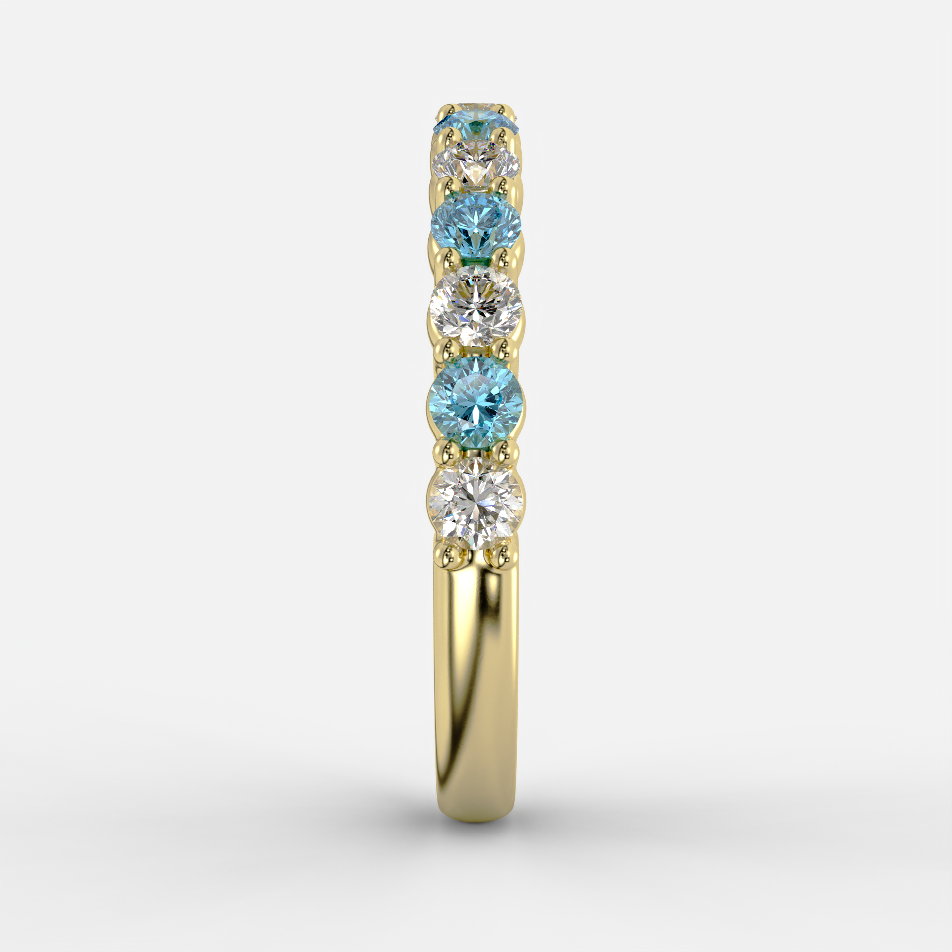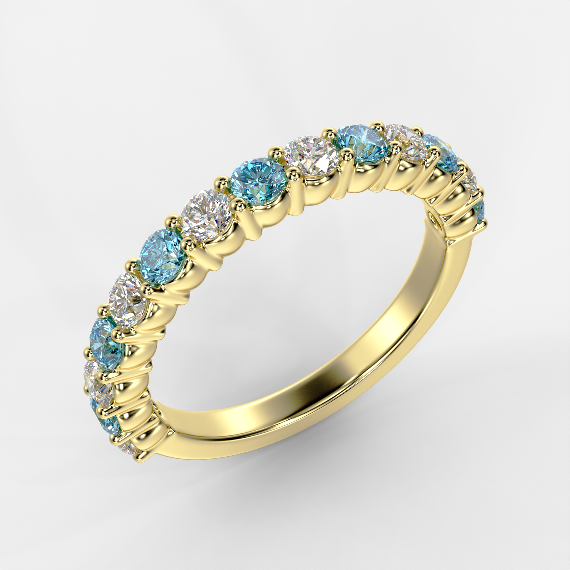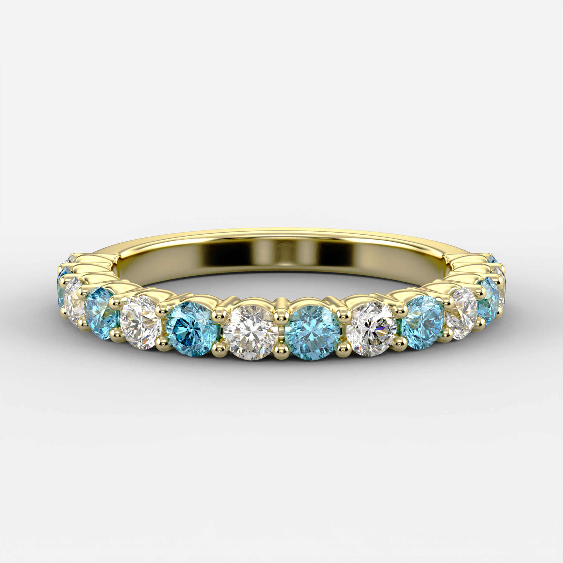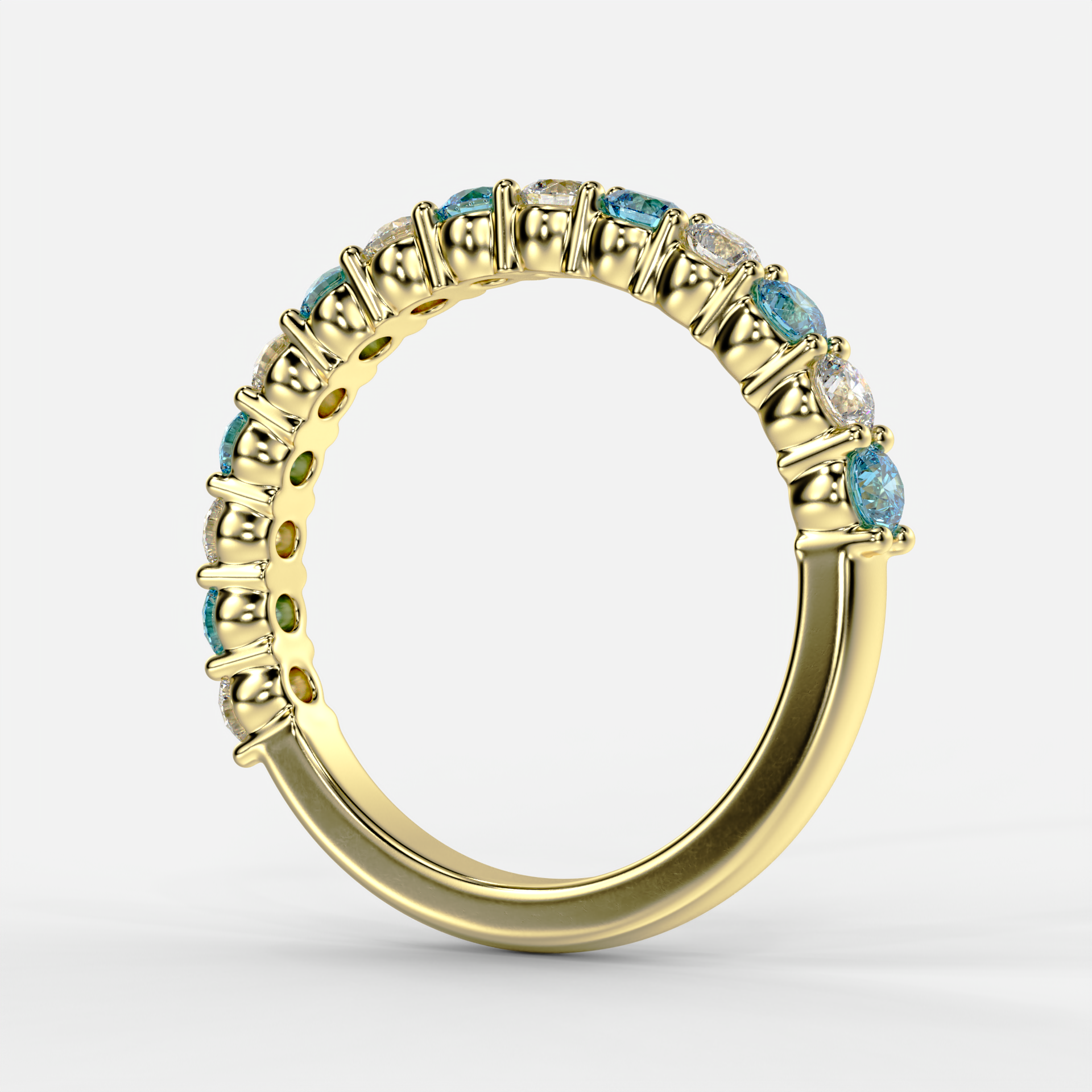 Churumbela de oro amarillo engastada con 14 diamantes corte redondo intercalados en color blanco y azul de 1.00ctw.