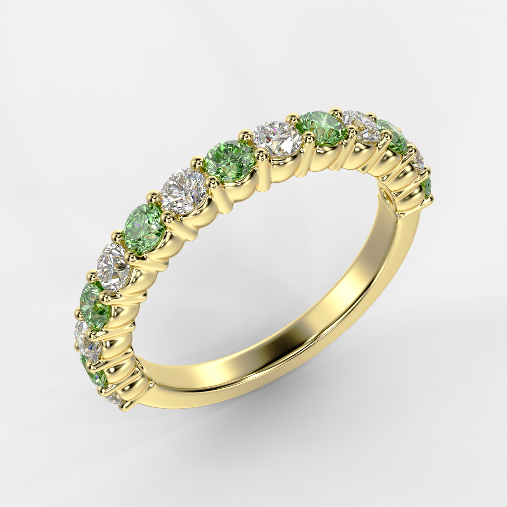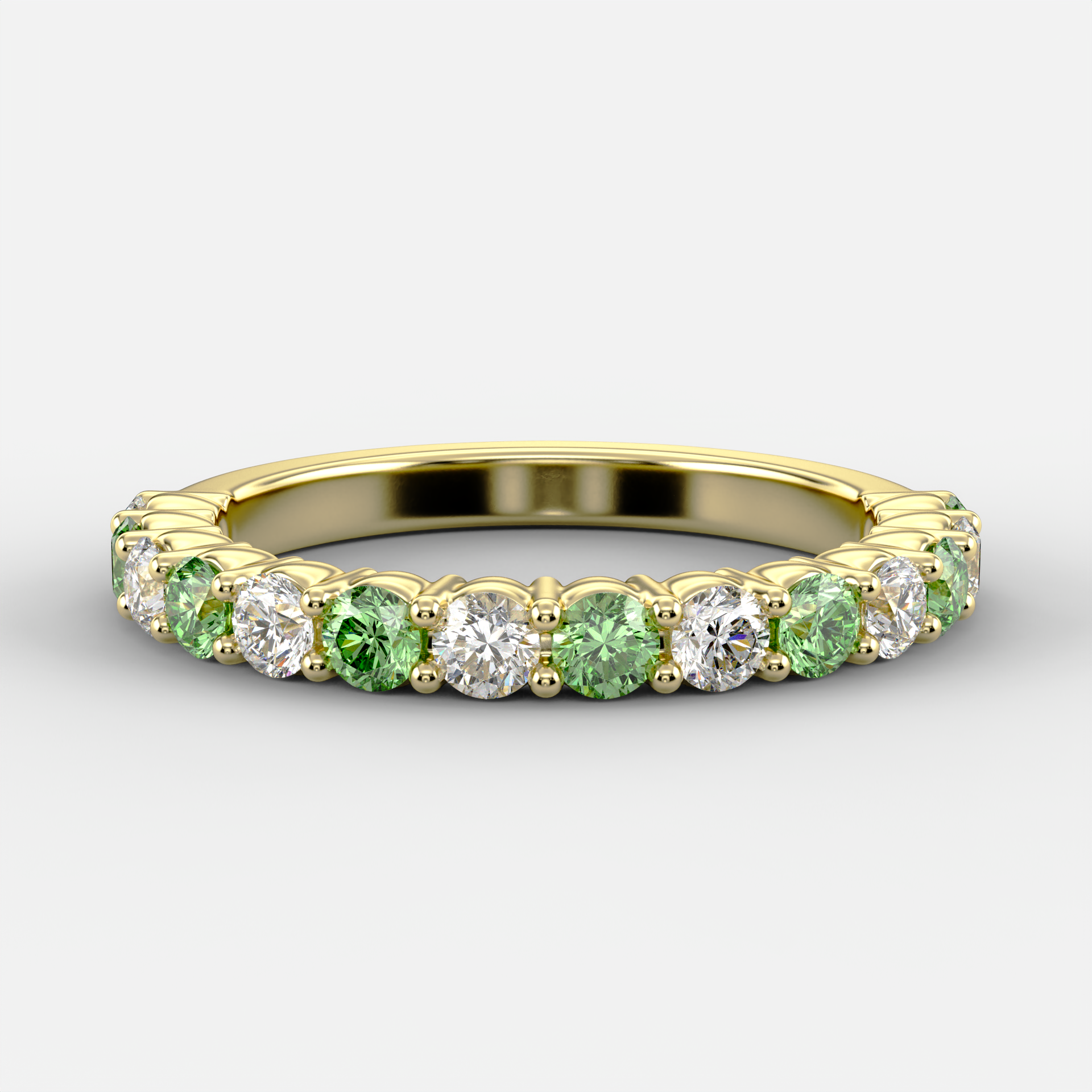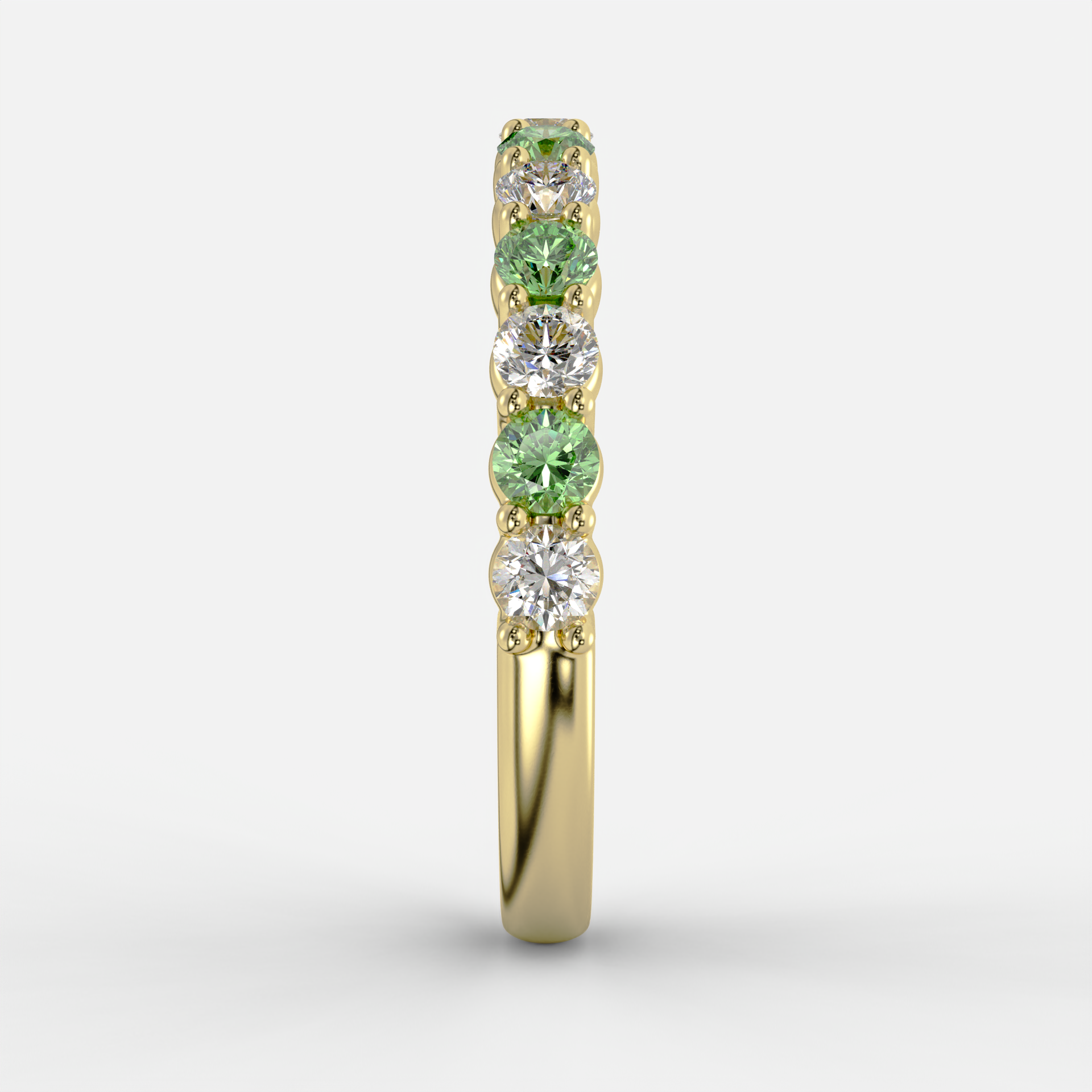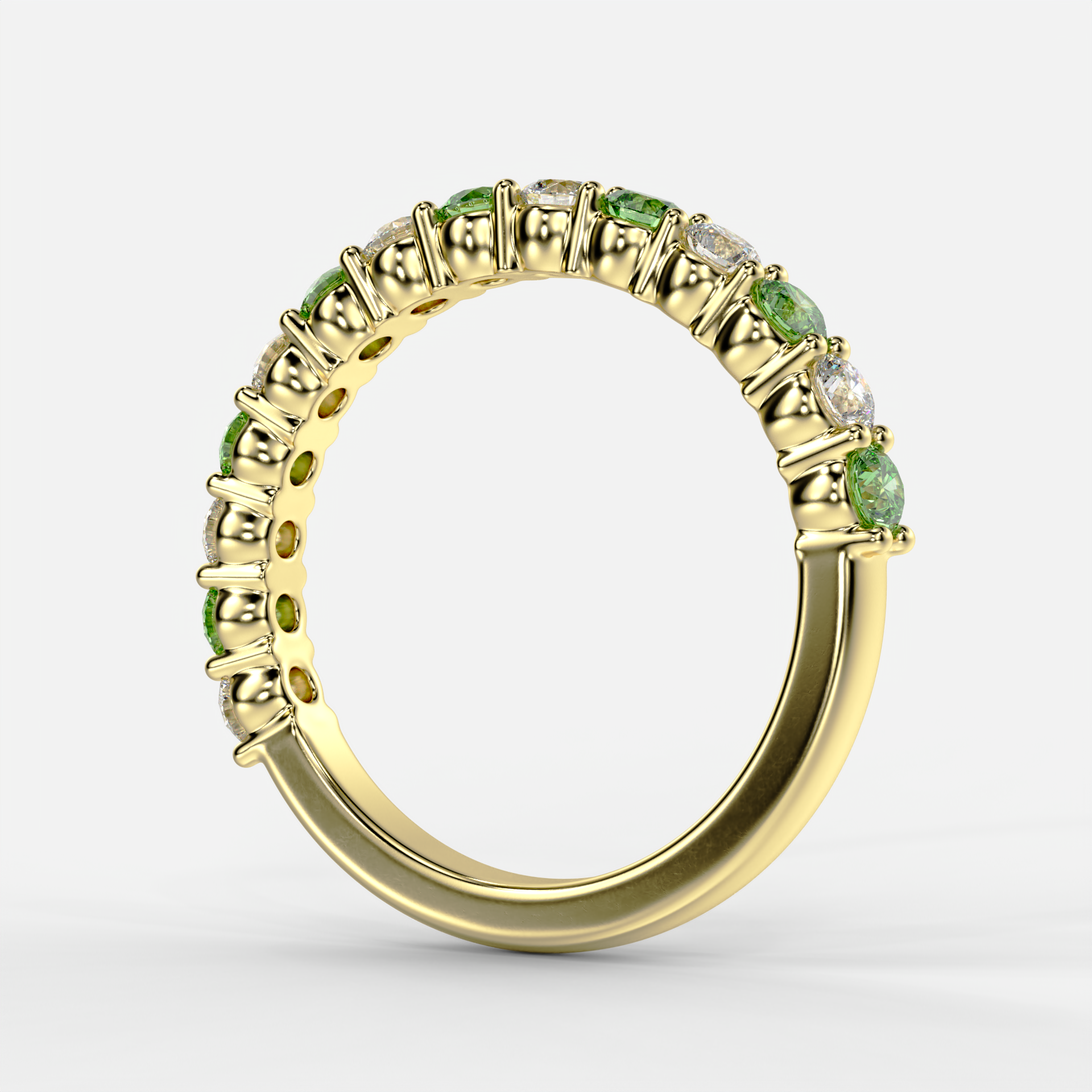 Churumbela de oro amarillo engastada con 14 diamantes corte redondo intercalados en color blanco y verde de 1.00ctw.